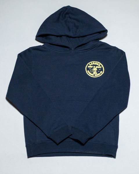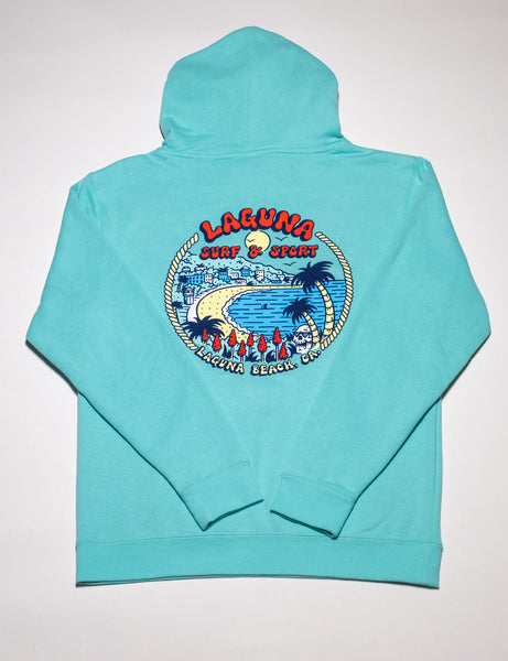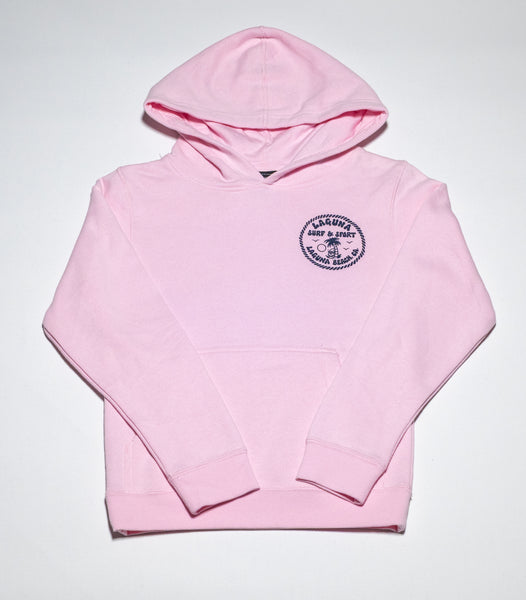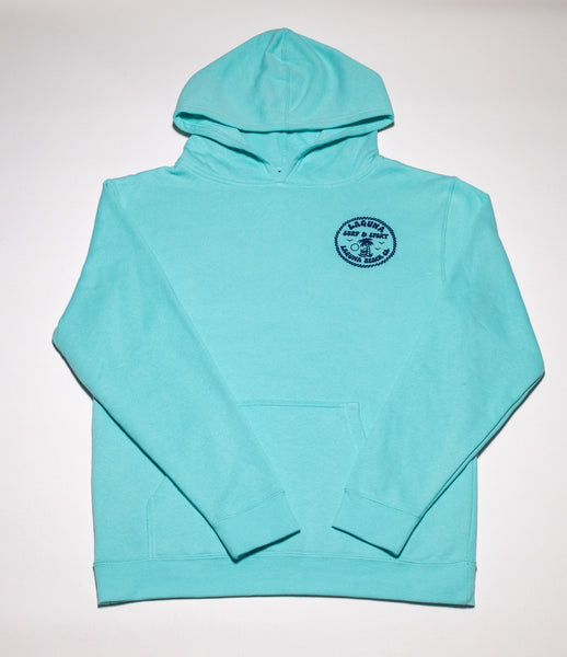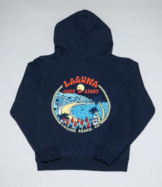 Super soft fleece, pullover youth hoodie with front pocket, and with small Laguna beach logo on front, large Downtown logo on back.