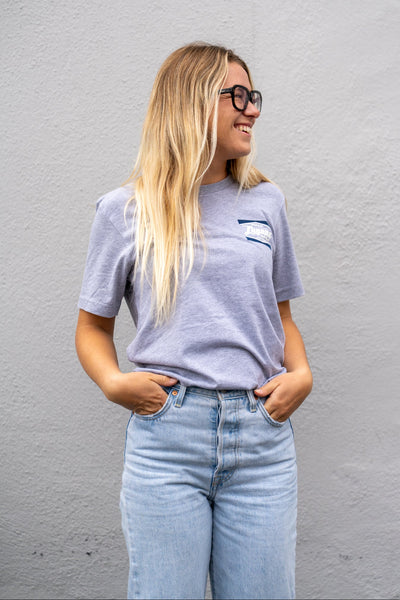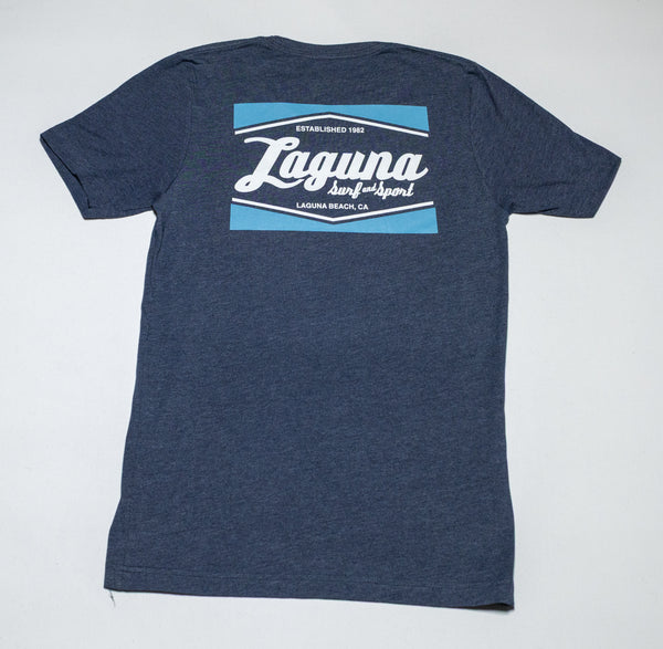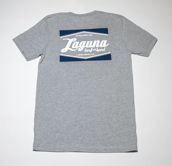 Super soft, lightweight, tri-blend heather short sleeve tee with small LSS BOX LOGO on front, and large logo design on back.
